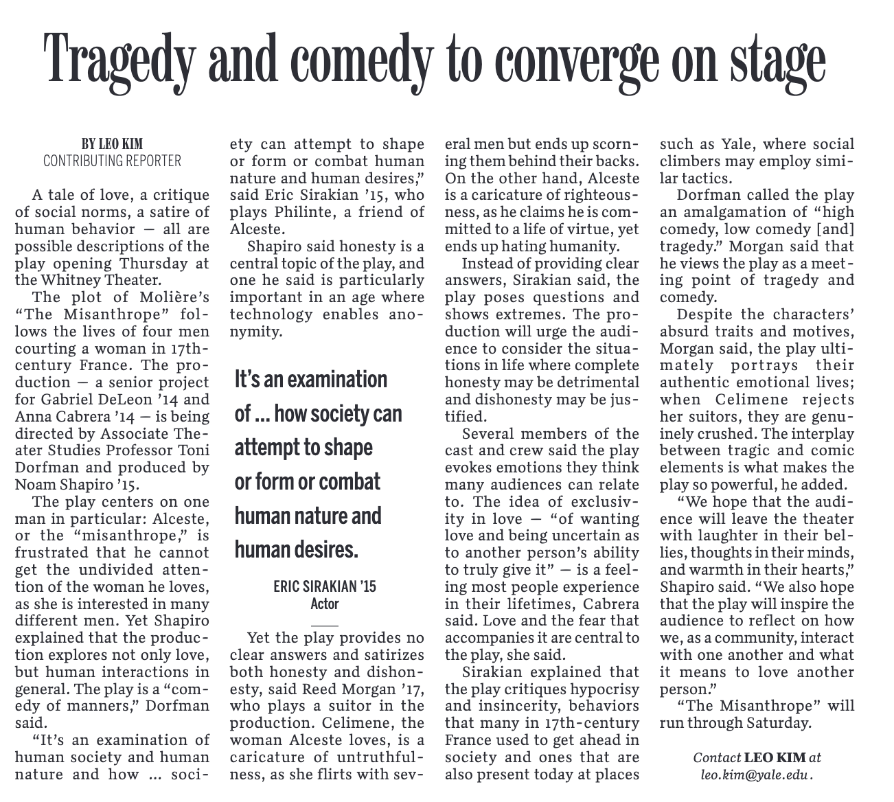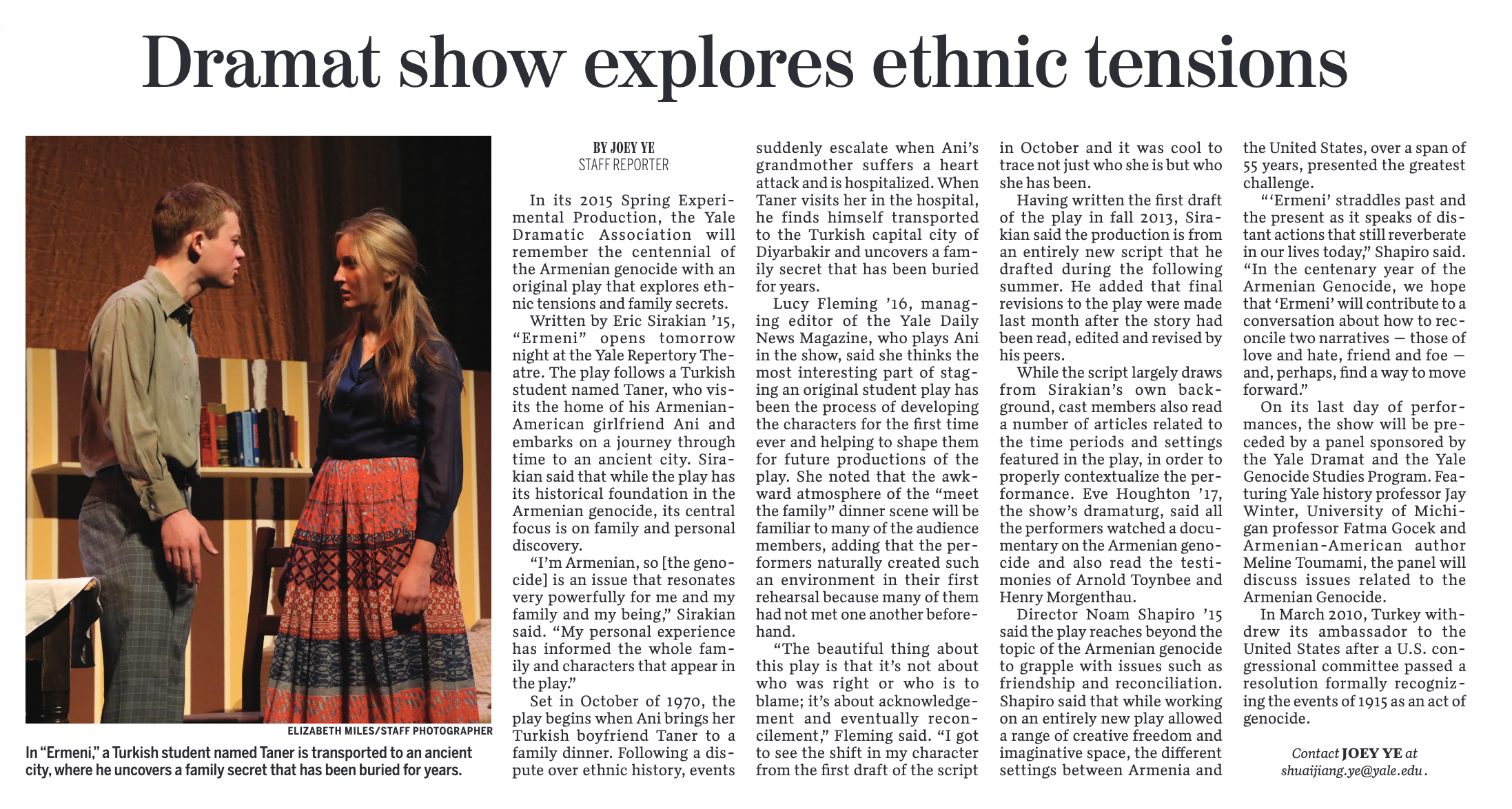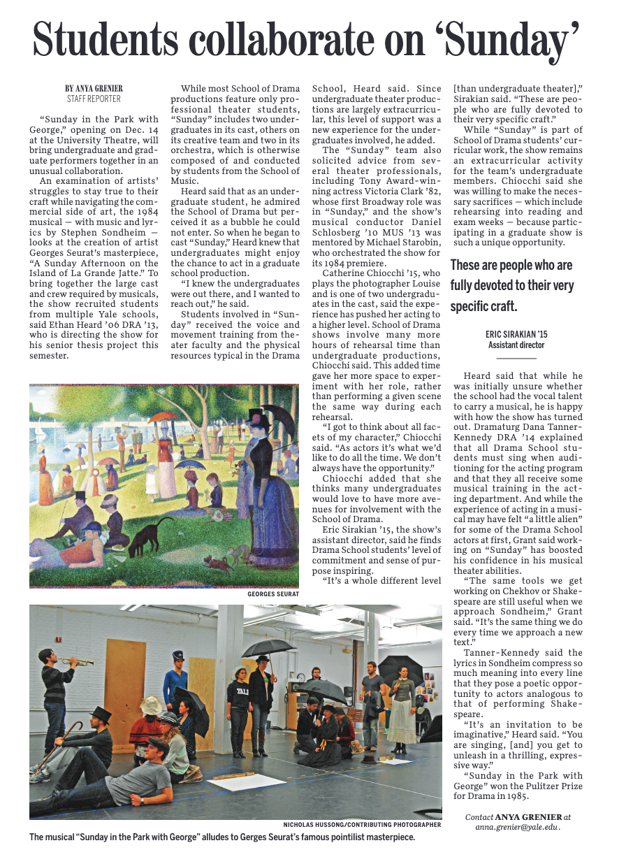 ES: One of the amazing things about Yale is that the arts are so important, and student initiatives are so greatly supported that you can break rules. And that’s what makes it feel like a place of such possibility and adventure.