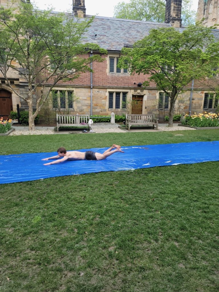 My attitude coming into college was, I will have the most fun here if I completely embrace the college I was randomly assigned to. And I feel incredibly lucky that I got assigned to JE. I met people who were equally invested in JE and knew that going all-in on JE meant going all-in on Yale. Here’s just one example of community I’ve experienced in JE: when I showed up as a freshman, there was a senior who had this massive tarp, and he would bring it out to the courtyard and make it into a waterslide, and people could come and just get in their bathing suits and go on the waterslide. And the tarp was passed down to a first-year counselor last year, and now I have it, and hopefully we’ll set it up sometime next week for a waterslide. It’s things like that about my arrival in JE that made me think, oh my god, this place is awesome!