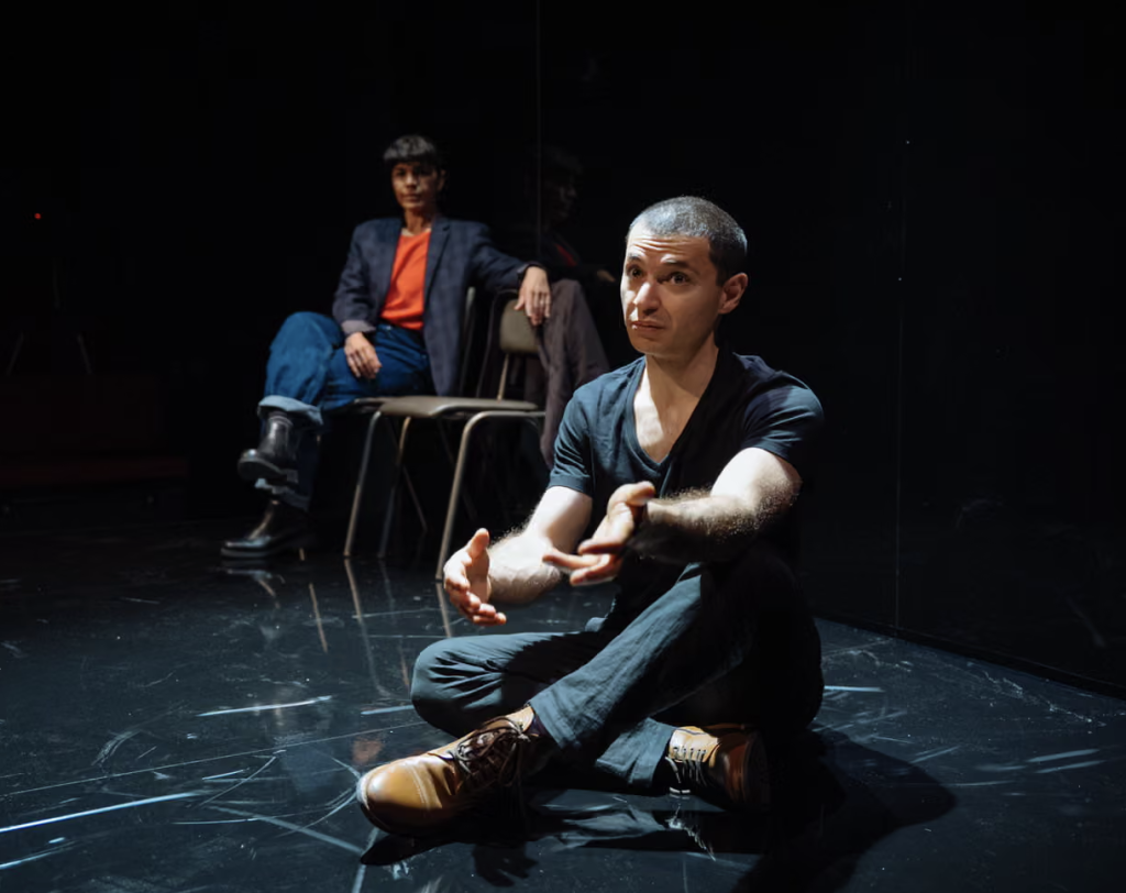 Sirine Saba (Sarah) and Eric Sirakian (Max) in Letters from Max at Hampstead theatre, London. Photograph: Helen Murray. Source.