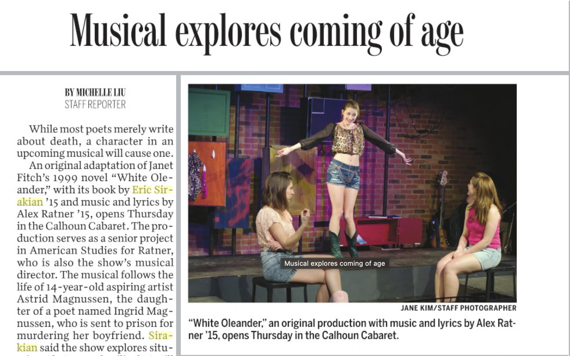 ES: One of the amazing things about Yale is that the arts are so important, and student initiatives are so greatly supported that you can break rules. And that’s what makes it feel like a place of such possibility and adventure.