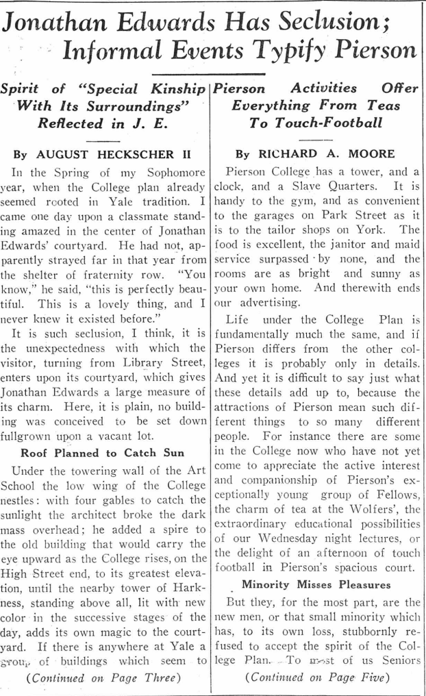 Note: In the 1930s, Yale’s undergraduate student body was much less diverse than it is today and these articles reflect that context. In the late 1960s, Yale College significantly increased the admission of students of color and students from public schools. Women undergraduates were first admitted in 1969.