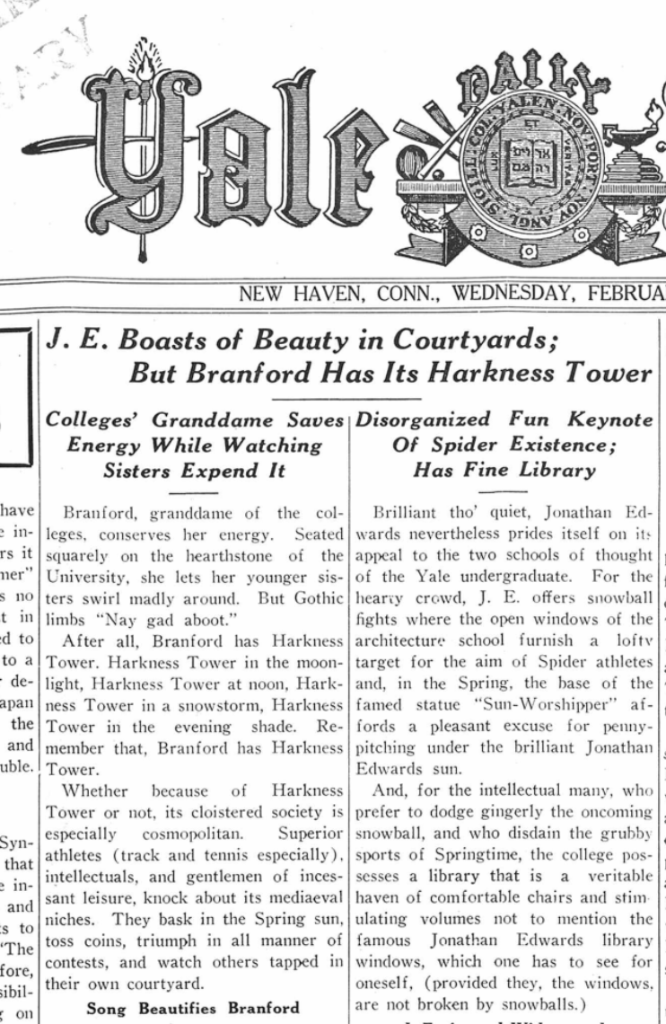 When the residential colleges were first introduced, the YDN ran “advertisements” every February highlighting the different college cultures to help students decide which college to apply to (initially, students were not placed in their residential colleges upon matriculation as they are today). Here are a few of the ads showcasing the perks of “Spidertown” (spoiler, it’s the library, the seclusion, and the “English atmosphere,” things that remain super cool today).