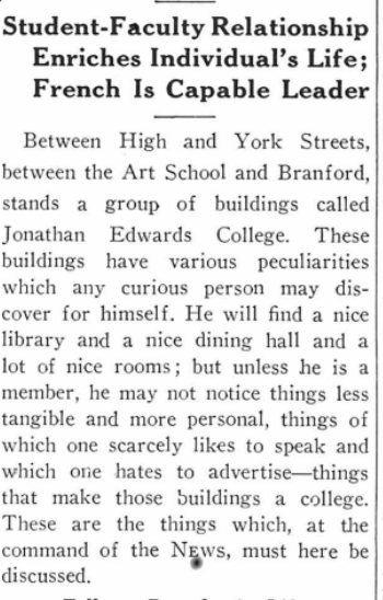 Recently, Jennifer Julier JE ’77 posted in the JE Trust Facebook group about a JE factoid she had found in the Yale Daily News archive. What follows are excerpts from the residential college’s early history that, like the factoid Julier shared, tell in part how JE’s culture emerged at a time when it, like the rest of Yale’s residential colleges in the 1930s, was a nascent dormitory community still laying its roots. A list of resources that allow other JE alums to dive deeper into this history follows the excerpts below.