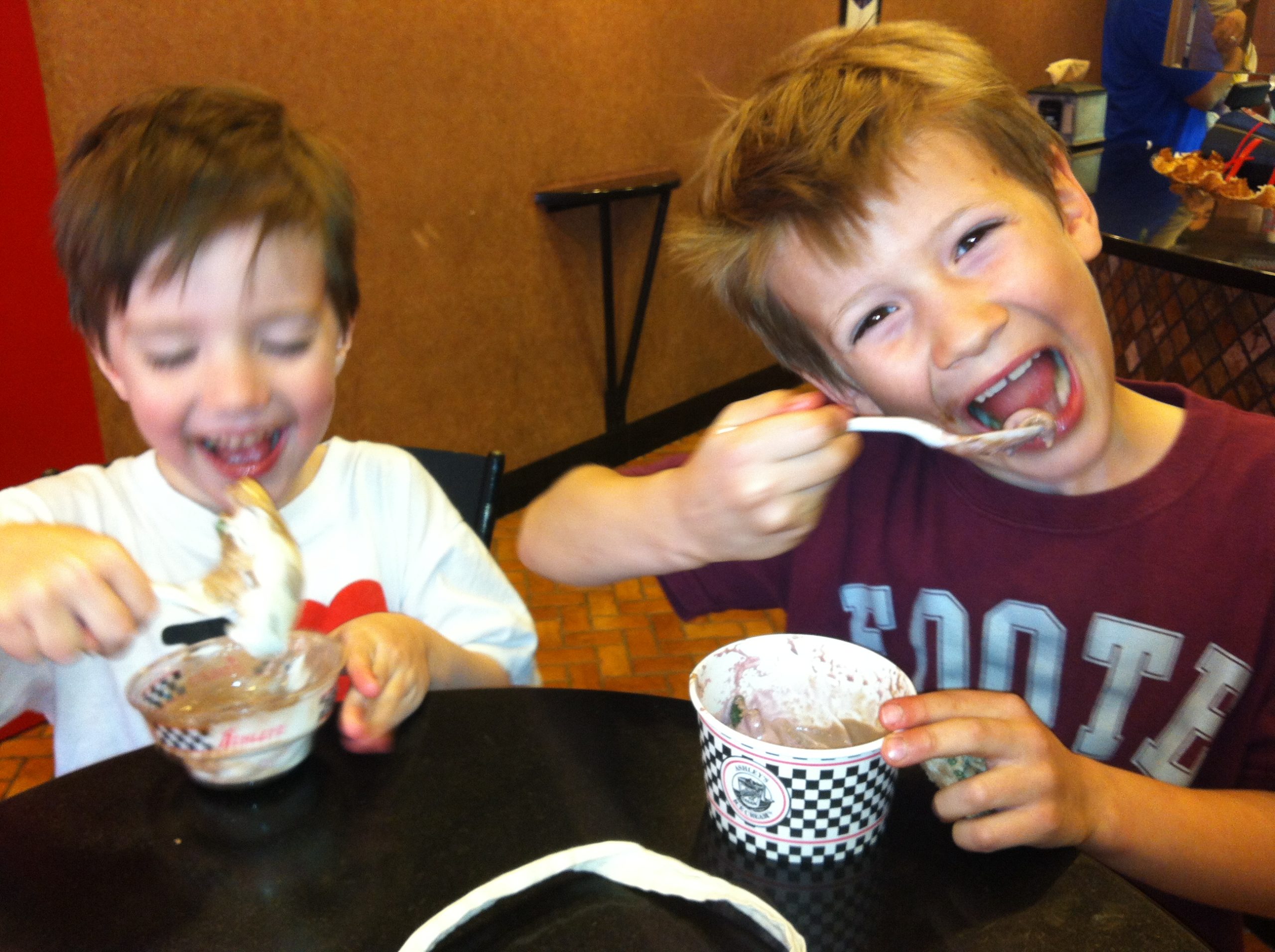 Elias (right) as a child eating ice cream at Ashley’s with his brother and playing baseball at the base of West Rock.